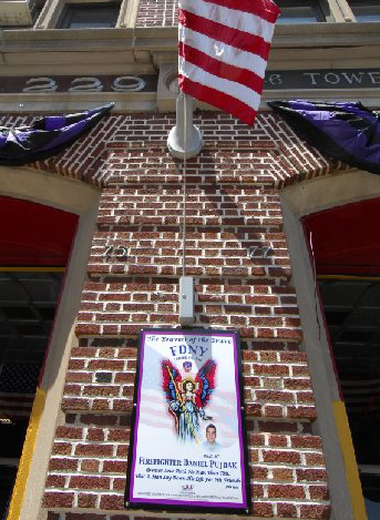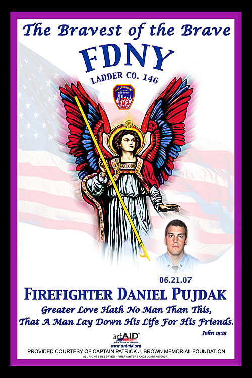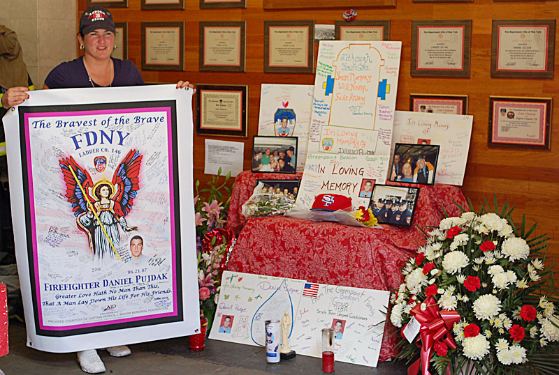 ArtAID provided thousands of remembrance cards, and a banner of the Firefighter's Angel hung proudly in front of his firehouse, Ladder 146, of FDNY.