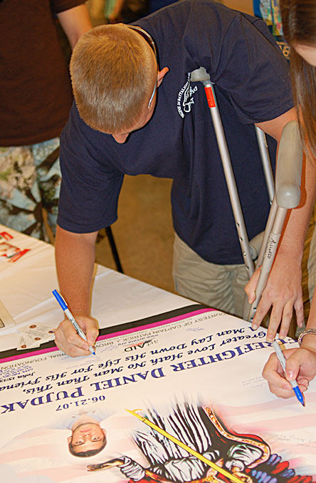Hundreds of brave men and women from Walter Reed Hospital participated by creating a signed banner for the firehouse. |